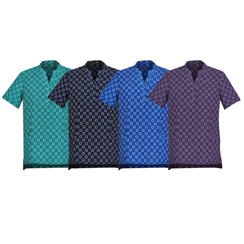 A perfect blend of style, comfort, and function. The easy-care fabric is breathable, soft, and lightweight—ideal for all climates. Styles feature longer hem lengths, side splits, and pockets for practicality.